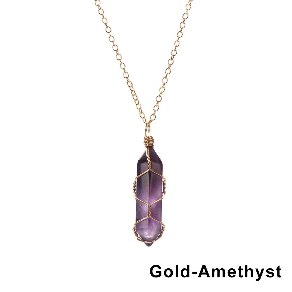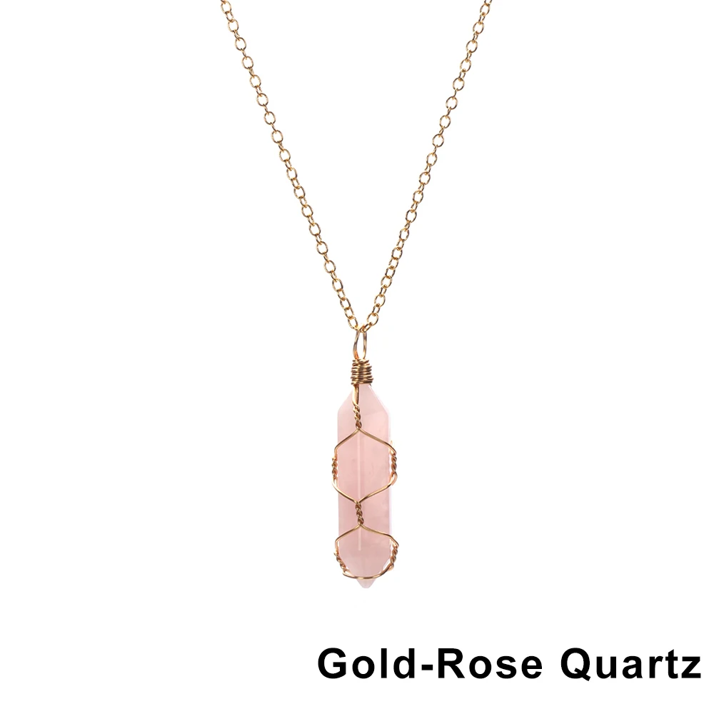 Collar con colgante de piedra Natural Hexagonal para mujeres y hombres, collar tipo aluminio, joyería de moda de cuarzo, rosa amatista